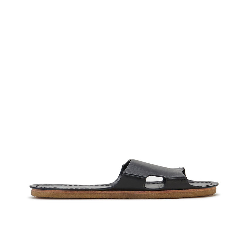 Een zeer modieuze en elegante eenvoetige open-toe slip-on schoen, die kan worden gebruikt als een mode slipper of een strand schoen.