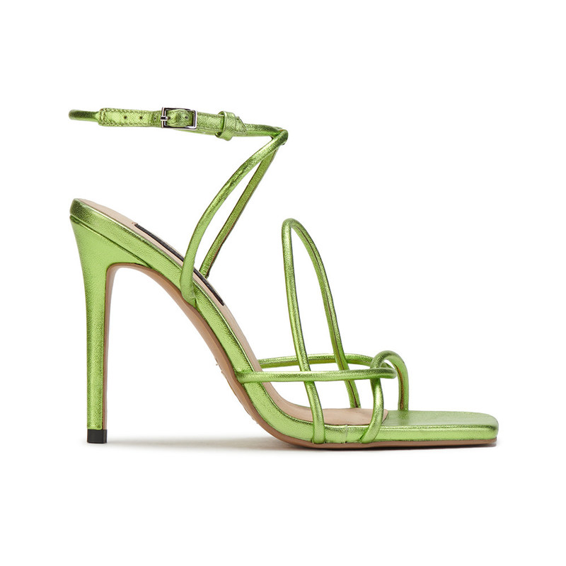 Vrouwen Spring Mint Square Toe Slip-On Stiletto Heel Rubber Outsole Riem Sandalen van de arbeidsmarkt